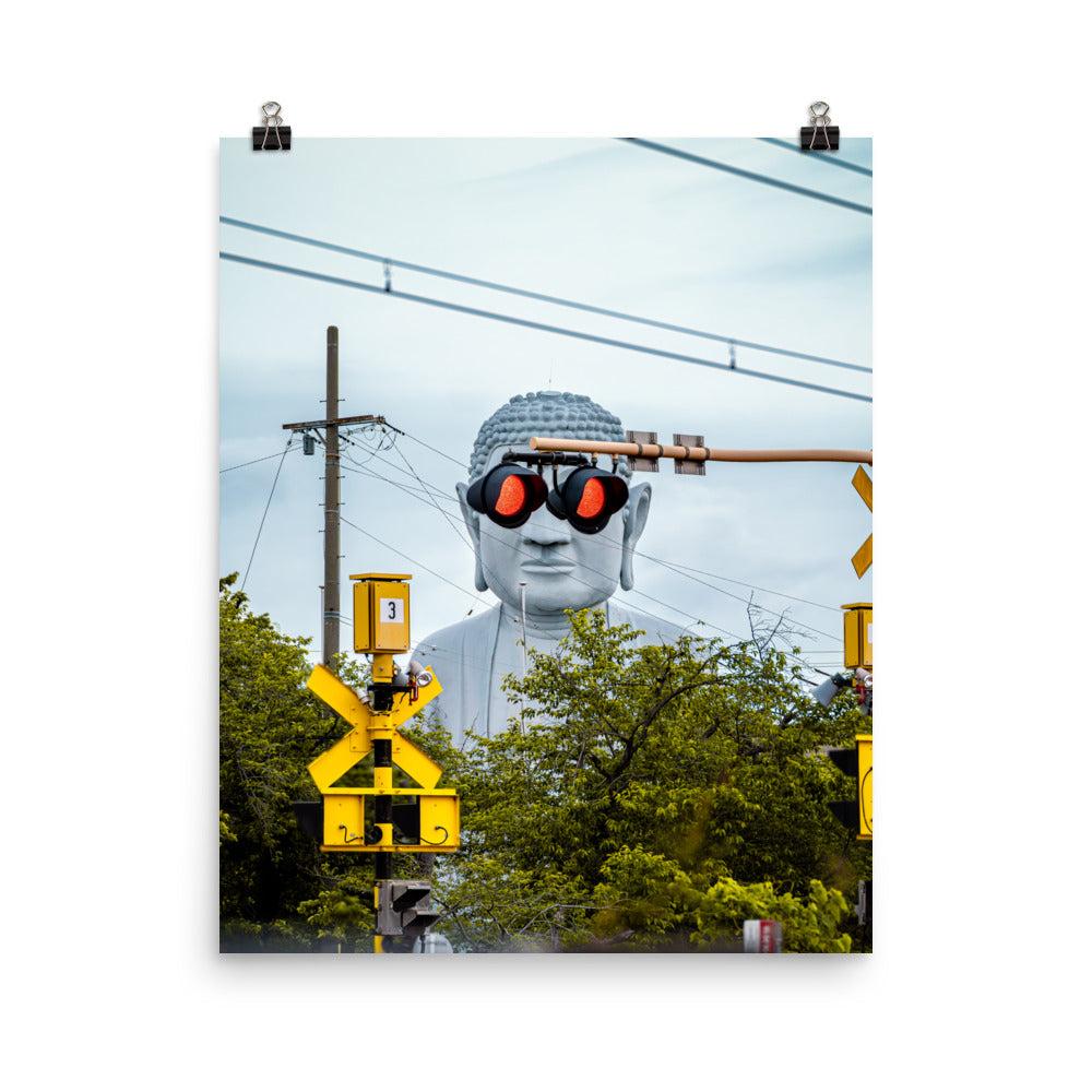 The Great Buddha at Hotei in Konan, Japan is located right next to a train track. The traffic lights for the trains lines up perfectly to create the illusion of the Buddha wearing sunglasses!